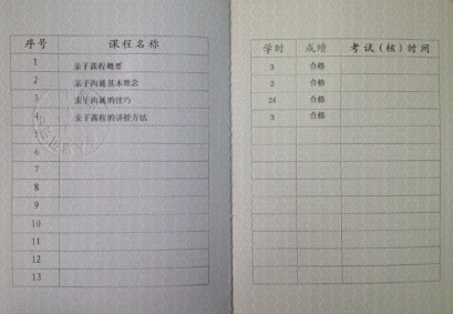 郭瑞立教授:教育部重点课题组长、心理咨询师、美国临床催眠治疗师、国际EAP培训师,从事亲子教育的研究、培训以及青少年学习潜能开发12年,曾经在全国进行过1000多场演讲和培训。著作:《成功教育》、《中国家庭成功教育》、《亲子沟通的技巧》、《超级学习法》、《超级学习法训练教程》、《超级记忆法训练教程》、《中国中小学生学习力训练教程》等。 证书介绍 证书是国家人力资源和社会保障部中国高级公务员培训中心的证书。此证书的级别高,效用强,具体表现在: 1、本证书可作为持证人参加该证所示项目(如“亲子沟通培训师”)的专业培训及已经具有该项目的专业知识和能力(证书的效用)。 2、该证书作为持证人能力评价、考核和任职的重要依据(证书的重要价值之一)。 3、该证书有课程名称、学时和考核成绩,持证人可根据本证书记录,依据有关规定登记学时(本证书更为重要的价值)。 本证书的价值基本和职业资格证书相当。 中国高级公务员培训中心证书样式