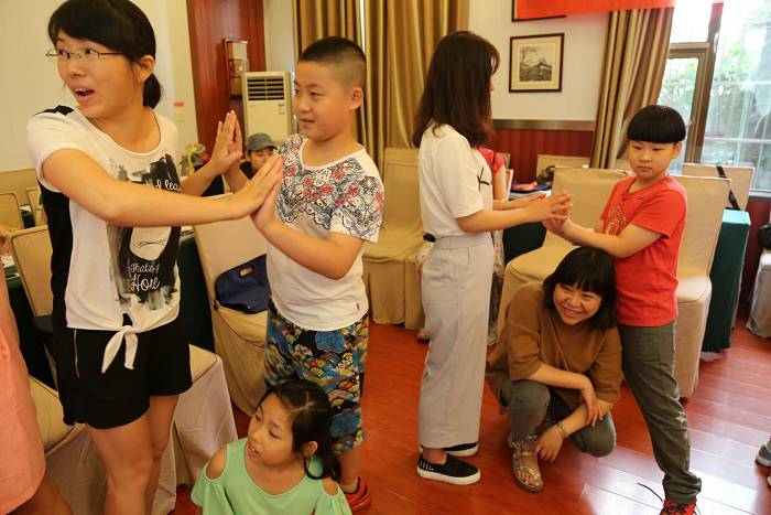 下午大家休息过后,孩子和家长们便在老师的带领下做起了大脑启动练习和预备四式。一开始,大家还对大脑启动练习半信半疑,直到后来的抓“俘虏”训练才发现了自己身上的可喜变化。通过几个简单的姿势,孩子们理清了自己的思维,开拓了自己的大脑,用清澈的思维完成了接下来的训练任务。