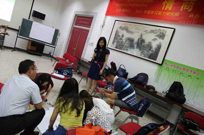 情商究竟为何物?情商与智商有关系么?情商到底包含哪些内容?情商可以通过训练提高么?2016年8月9日,文尊学习能力研究院主办的“情商训练师”的认证培训正式在北京大学启动,研究院院长郭瑞立教授不仅对上述问题做了详细的阐述,还根据中国的社会文化状况和教育背景,提出了更适合当今中国人的情商训练内容,并带领学员一同体验。 ![]()